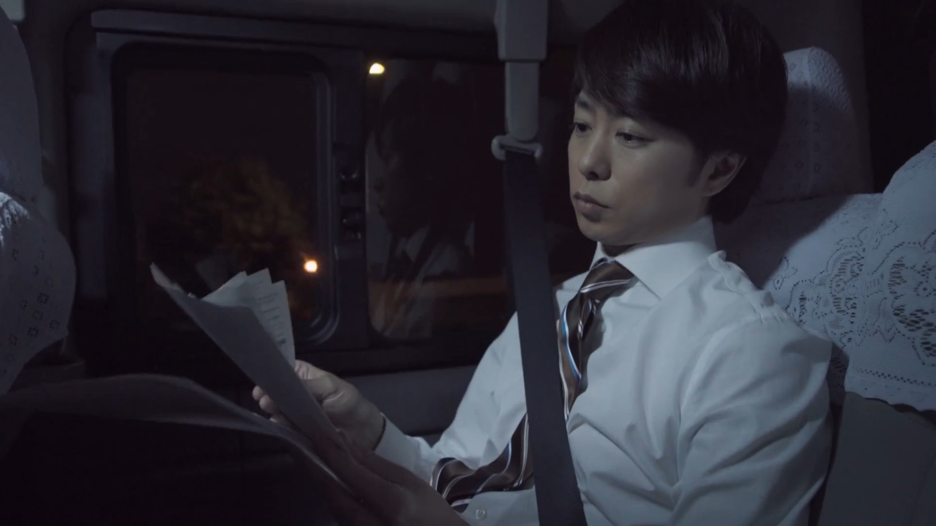 相叶在夜色里把车停在樱井家楼下时,等了片刻,却不见后排的樱井推门下车,于是看看后视镜,发现他正把胳膊倚在窗边,指节抵在下巴上,出神。